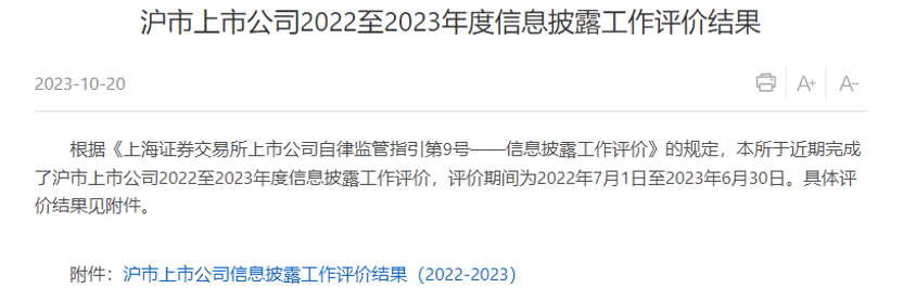上交所上市公司信息披露工作评价是对沪市上市公司信息披露质量及相关工作的综合评价,主要包括信息披露的合规性及有效性、信息披露制度建设、相关资源配置、公司治理、投资者关系管理水平等方面内容。本次评价结果体现出上交所对j9九游会官方生物在规范运作、信息披露质量、投资者关系管理方面的高度肯定。