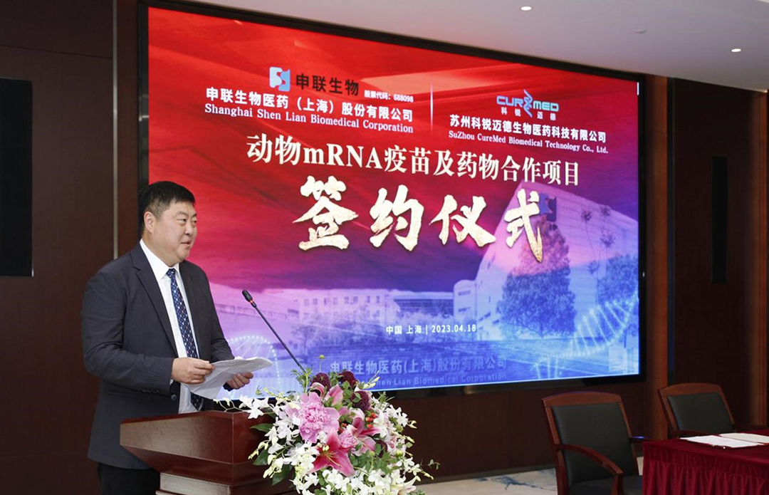 2023年4月18日,中国-九游·会J9官方网站|真人游戏第一品牌 与苏州科锐迈德生物医药科技有限公司在上海紫竹高新区举行“动物mRNA疫苗及药物合作项目”签约仪式。上海紫竹高新区管委会副主任、上海紫竹高新区(集团)有限公司副总经理夏光,招商总监任曼,j9九游会官方生物董事长聂东升,科锐迈德董事长刘毅翔及双方项目相关核心人员出席了仪式。