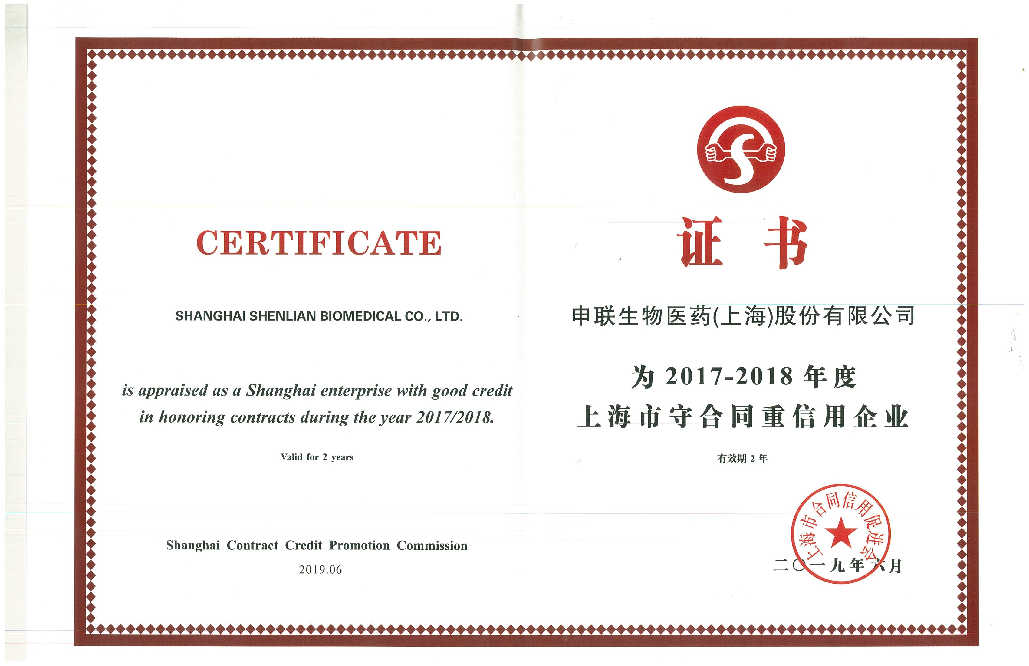近日,经上海市合同信用促进会的综合考证及专家评审委员会审核,j9九游会官方生物被评为“2017-2018年度重合同守信用企业”、“2017-2018年度合同信用等级AAA级等级认定”,并颁发奖牌及证书。这是公司开拓市场、强化管理、规范运作获得有关主管部门的制度化认可的重要标志。
