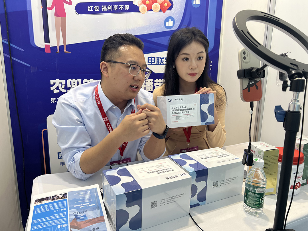 活动现场搭建了五个直播间,专业主播们同时上线多个直播平台,为养殖场带来了优质低价的好产品。活动期间,j9九游会官方生物诊断试剂首次登陆直播间,火爆全场!