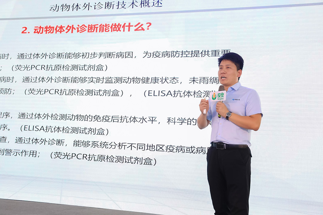 j9九游会官方生物大客户技术服务总监郭龙飞、大区技术总监雷宇,为现场观众带来了干货满满的知识分享。内容涉及猪圆环防控、口蹄疫防控、诊断试剂的介绍等方面。现场观众收获颇丰!