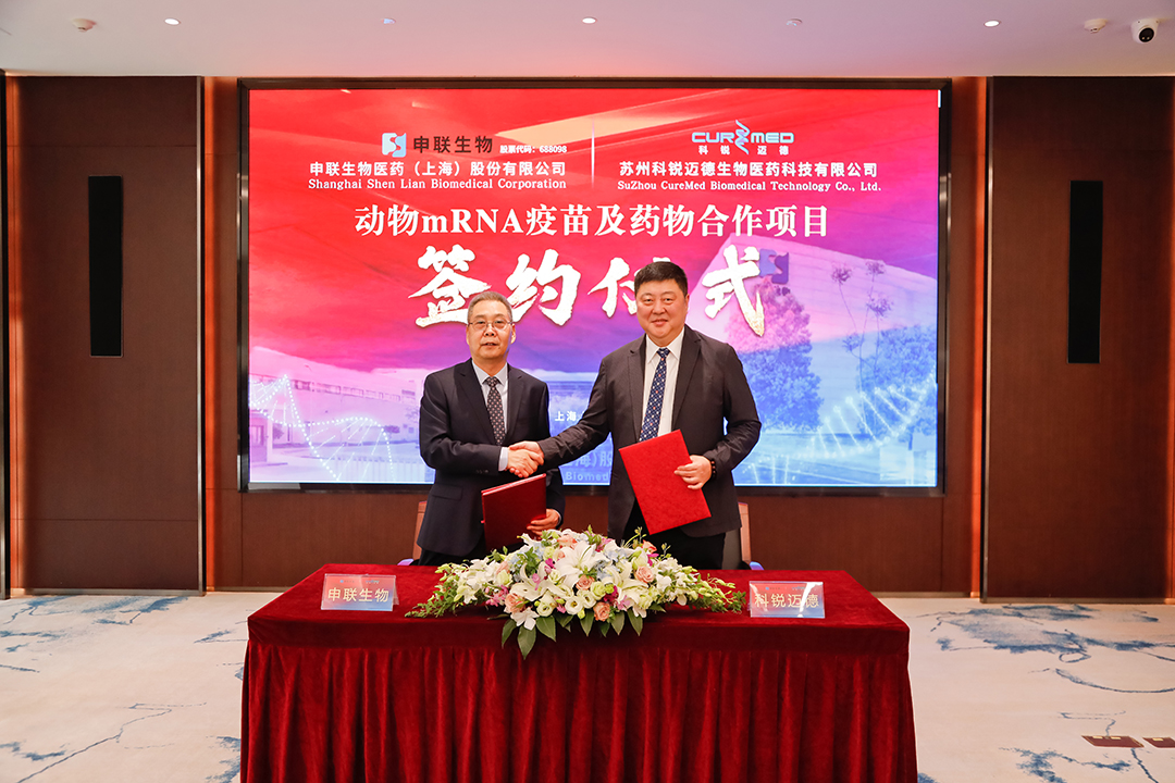 2023年4月18日,中国-九游·会J9官方网站|真人游戏第一品牌 与苏州科锐迈德生物医药科技有限公司在上海紫竹高新区举行“动物mRNA疫苗及药物合作项目”签约仪式。上海紫竹高新区管委会副主任、上海紫竹高新区(集团)有限公司副总经理夏光,招商总监任曼,j9九游会官方生物董事长聂东升,科锐迈德董事长刘毅翔及双方项目相关核心人员出席了仪式。