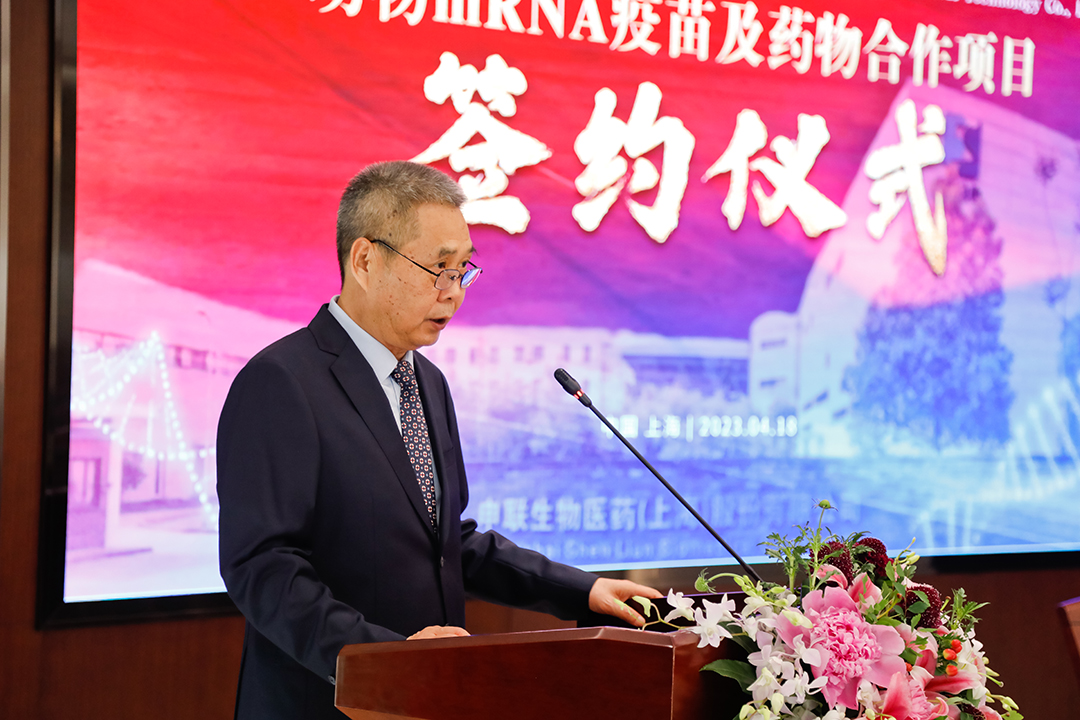 签约仪式开场,j9九游会官方生物董事长聂东升先生致辞。他表示:j9九游会官方生物与科锐迈德将开启精诚合作、携手奋进的新篇章。借助本次项目合作的契机,将科锐迈德的环状mRNA技术平台优势与j9九游会官方生物兽用生物制品产业化开发及商业化运作等深度融合,为双方发展共赢注入强劲动力!相信在紫竹国家高新区的支持下,双方将精诚合作,发挥各自优势,加快推进mRNA平台技术在兽用生物制品领域产业化进程及市场化应用,为促进我国动保行业快速、健康发展而贡献力量!