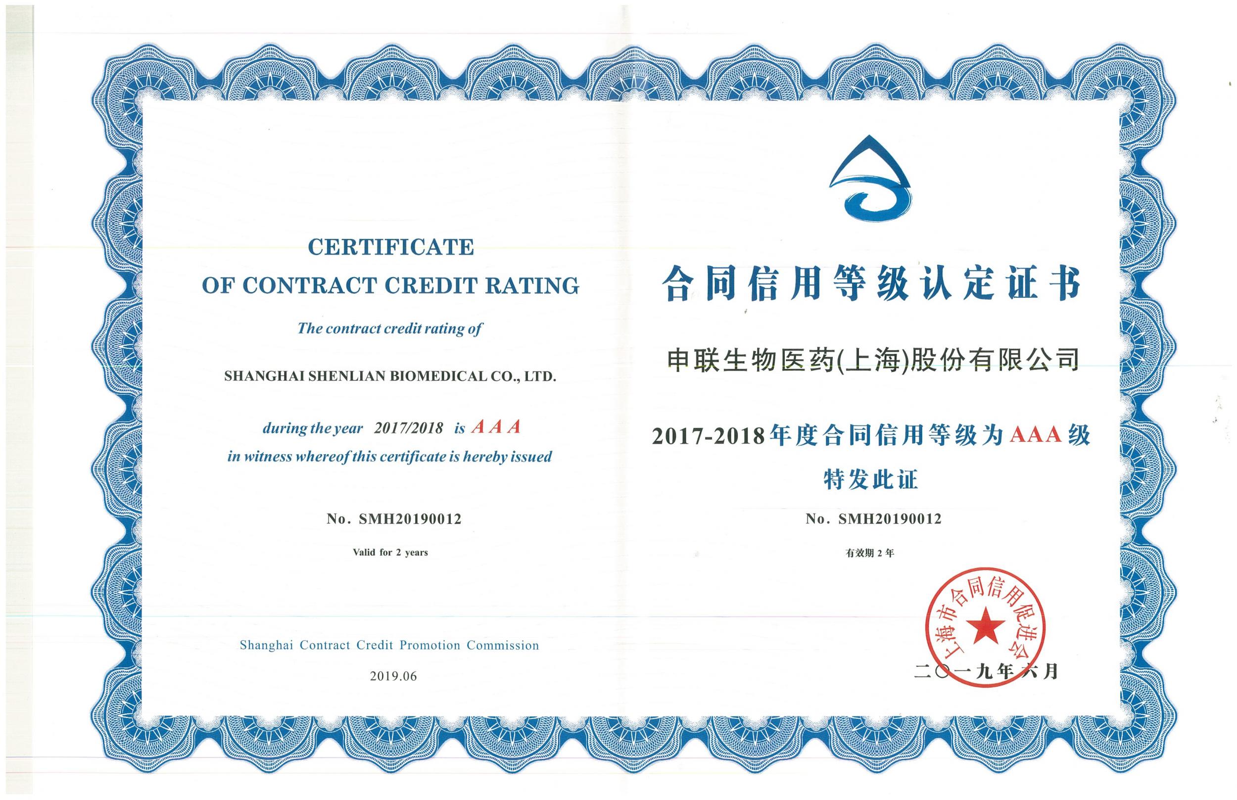 近日,经上海市合同信用促进会的综合考证及专家评审委员会审核,j9九游会官方生物被评为“2017-2018年度重合同守信用企业”、“2017-2018年度合同信用等级AAA级等级认定”,并颁发奖牌及证书。这是公司开拓市场、强化管理、规范运作获得有关主管部门的制度化认可的重要标志。
